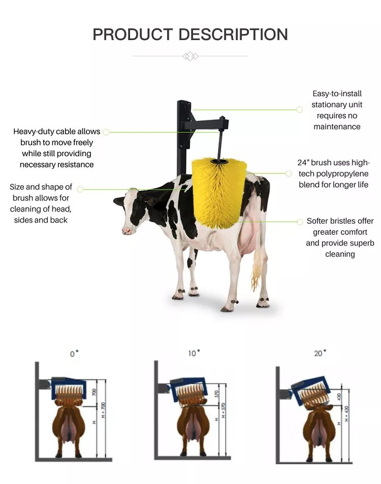 2. Nastavljivi koti 0°/10°/20° ustrezajo živini različnih velikosti in omogočajo čiščenje glave, bokov in hrbta.