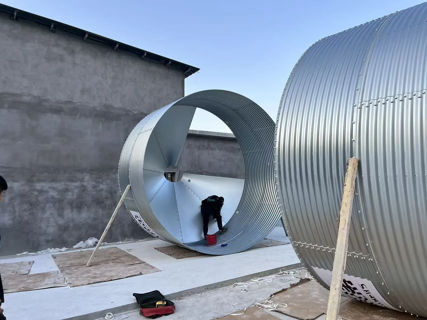 Obdobje gradnje bo trajalo predvidoma tri mesece. Trenutno delavci postavljajo krmne silose in končujejo ograde, gradnja pa je v polnem teku.
